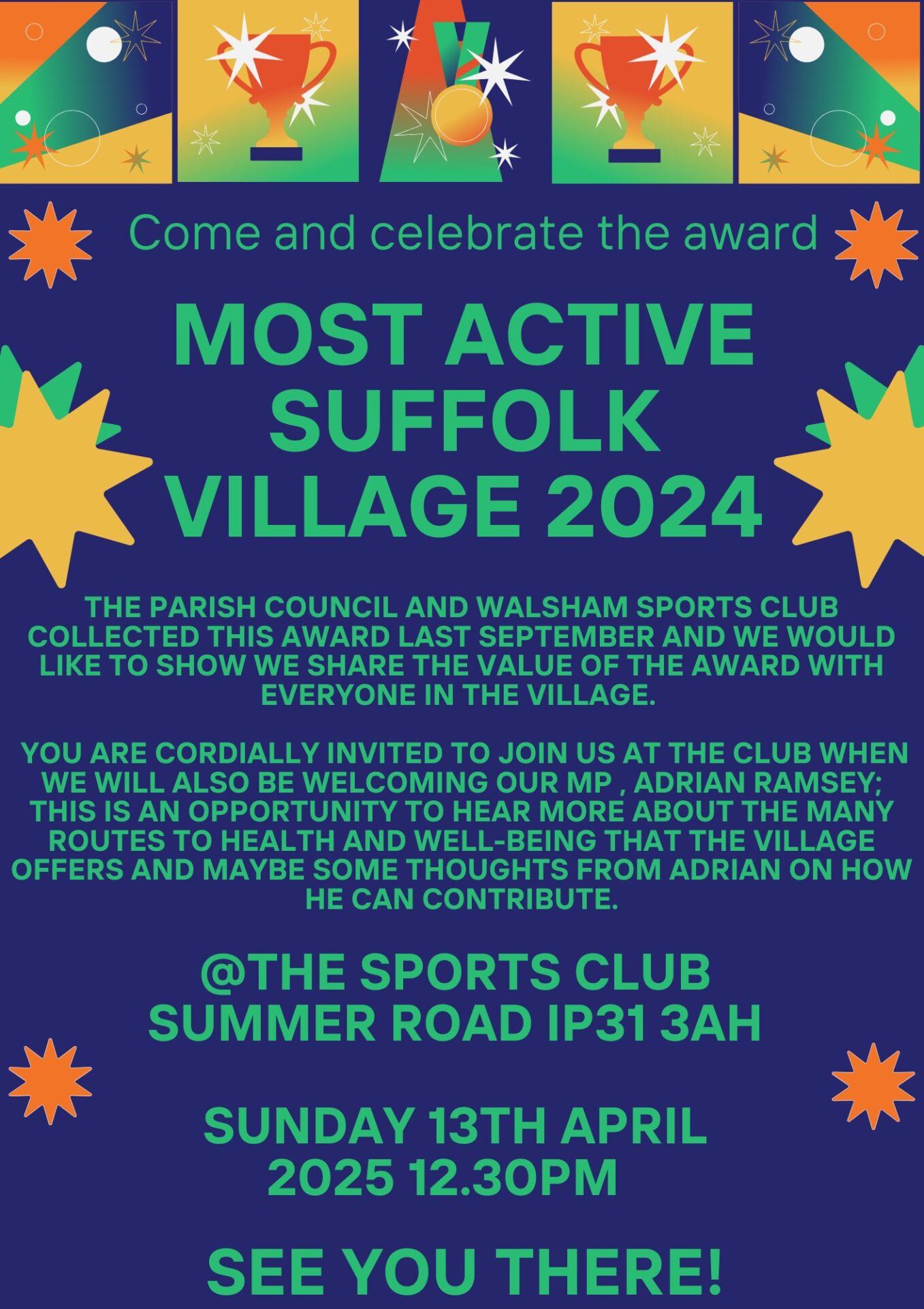 Walsham le Willows proudly celebrated being named the “Most Active Village 2025” during an official unveiling ceremony held on Sunday at the Sports Club. The event was attended by around […]